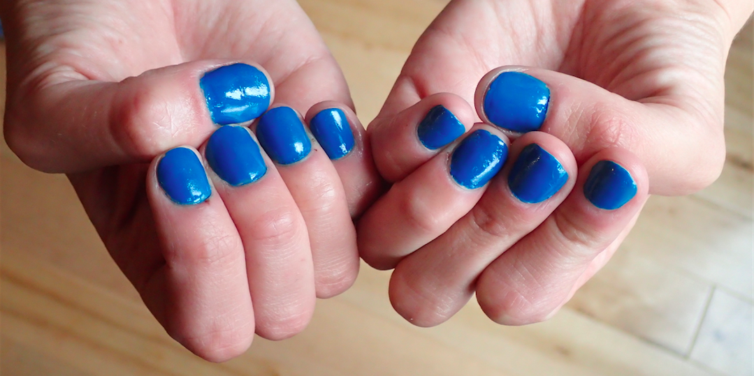 This is a not fast drying item. I applied it about three hours before bedtime and it was still soft enough that my sheets left light, though visible impressions on my nails. Thankfully, the strong, solid colour and semi-gloss finish means that these impressions didn't actually wreck my manicure.
